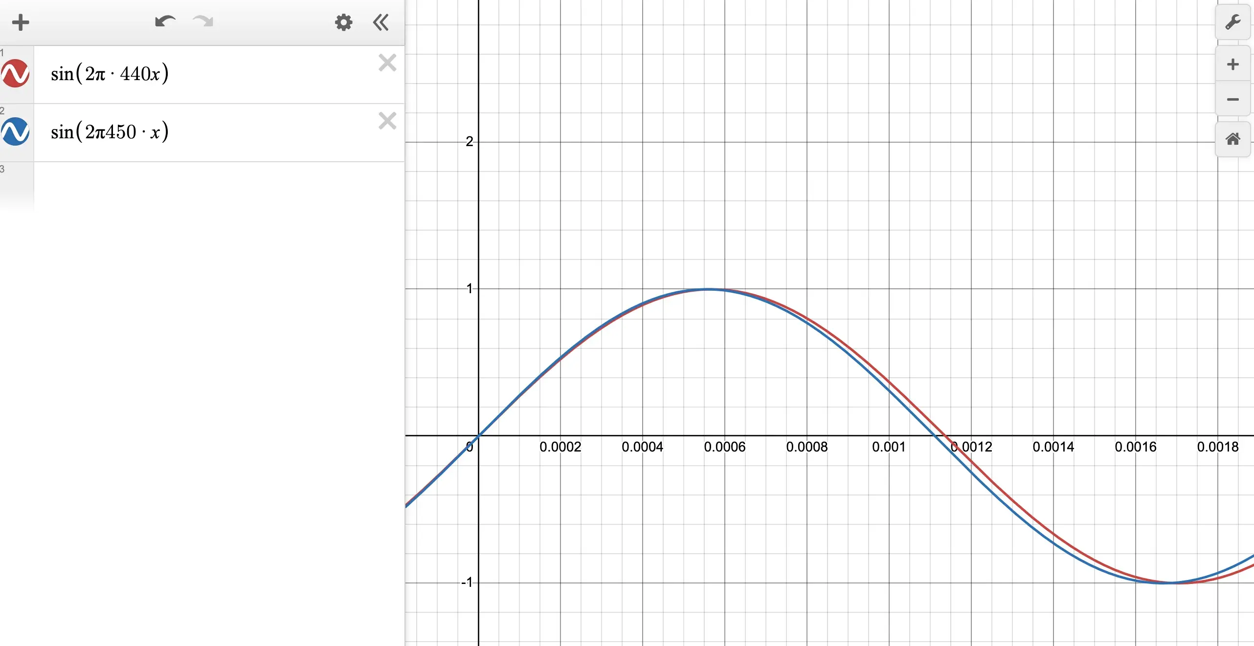 Here’s a little detour into musical instrument tuning systems. Let’s say I play a note at 440 Hz (this would be the standard A above middle C). Let’s say I were to play another note at 450 Hz. What would happen?